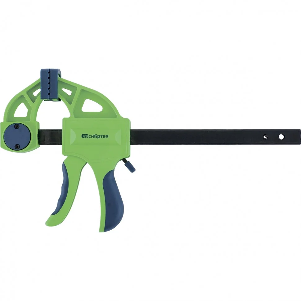 F-образная быстрозажимная струбцина Сибртех 20564, 200 х 70 х 420 мм, в пластиковом корпусе, с фиксатором и двухкомпонентной рукояткой, позволяет зажимать заготовки для их дальнейшей обработки или сборки. Помогает решать множество задач благодаря оптимальной глубине зажима, составляющей 70 мм. Пластинчатый механизм пошагово перемещает подвижную губку вдоль направляющей до достижения максимально плотного захвата детали. Фиксатор препятствует движению губки в обратную сторону. Струбцина пригодится в столярной мастерской, а также будет полезна в быту.ПреимуществаШтанга изготовлена из стали, а корпус — из ударопрочного ABS-пластика, что увеличивает надежность конструкции.На губках имеются накладки, защищающие поверхность зажимаемого предмета от повреждений.Опорную губку можно переставить на другой конец штанги, превратив струбцину в распорный инструмент.Эргономичные двухкомпонентные рукоятки удобно лежат в руке, что обеспечивает комфортность работы.