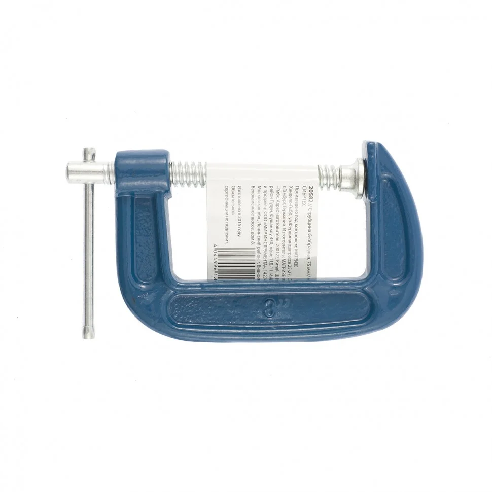 G-образная струбцина Сибртех 20582, 75 мм, применяется для фиксации заготовок с целью их склеивания, а также для крепления к верстаку или станку для опиливания, сверления и другой обработки. Используется во время сварки металлических деталей. Рама выполнена из чугуна с шаровидным графитом, поэтому отличается высокой прочностью и устойчивостью к нагрузкам. Струбцина пригодится в слесарной и столярной мастерской, а также будет полезна в домашнем хозяйстве.ПреимуществаРезьбовой шток изготовлен из прочной стали Ст3, что позволяет прикладывать значительное усилие для фиксации предметов.Подвижный зажим, установленный на шаровой шарнир, надежно удерживает зажимаемые детали.Корпус струбцины покрыт порошковой эмалью, а шток оцинкован, что обеспечивает им защиту от коррозии.