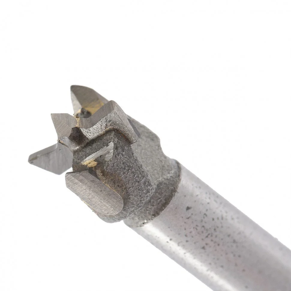 - Режущий ободок перерезает волокна на краях отверстия раньше, чем основные лезвия погружаются в древесину, и при этом почти не образуются сколы.