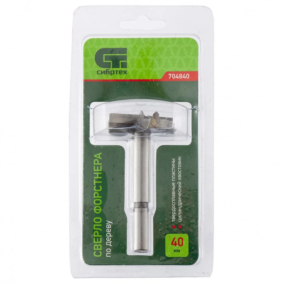 Сверло Форстнера по дереву, 40 мм, цилиндрический хвостовик Сибртех 704840