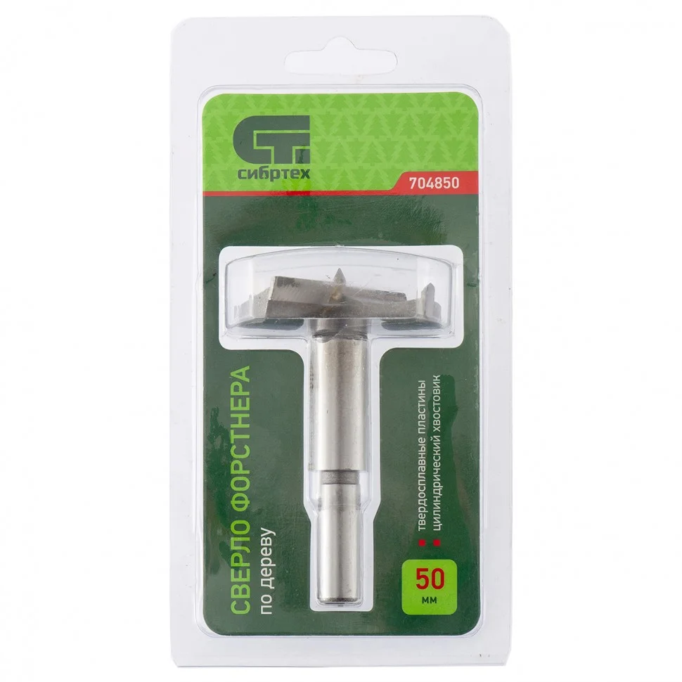 Сверло Форстнера по дереву, 50 мм, цилиндрический хвостовик Сибртех 704850