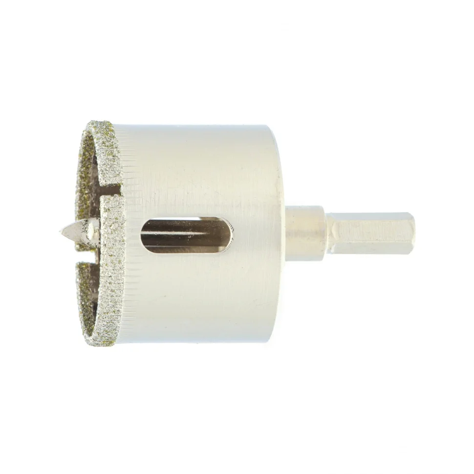 Сверло Сибртех 72719, 38 х 55 м, с 6-гранным хвостовиком и центрирующим сверлом позволяет сверлить отверстия в керамической плитке и стекле. Его устанавливают на дрель или шуруповерт, рекомендуемый диапазон рабочих оборотов 350-700 об/мин. Благодаря 6-гранному хвостовику сверло не проворачивается в патроне электроинструмента. После заглубления алмазной коронки на 1-2 мм рекомендуется снять центрирующее сверло, это поможет увеличить его ресурс. Применение водяного охлаждения значительно повышает срок службы оснастки. Ее используют при выполнении бытовых ремонтных и отделочных работ.ПреимуществаКоронка изготовлена из среднеуглеродистой стали марки 45, поэтому выдерживает повышенные механические нагрузки.Центрирующее сверло быстро заглубляется в материал, не давая коронке сдвигаться во время сверления.Центровик является съемным, при необходимости его можно заменить на сверло Сибртех 72709.Коррозионностойкое покрытие защищает оснастку от ржавчины при мокром сверлении, продлевая срок ее службы.
