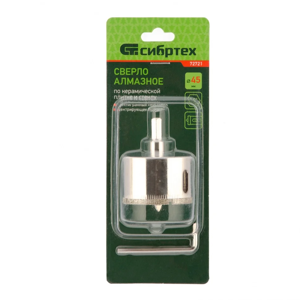 Сверло по керамической плитке и стеклу, 45 х 55 мм, шестигранный хвостовик, с центрующим сверлом Сибртех 72721