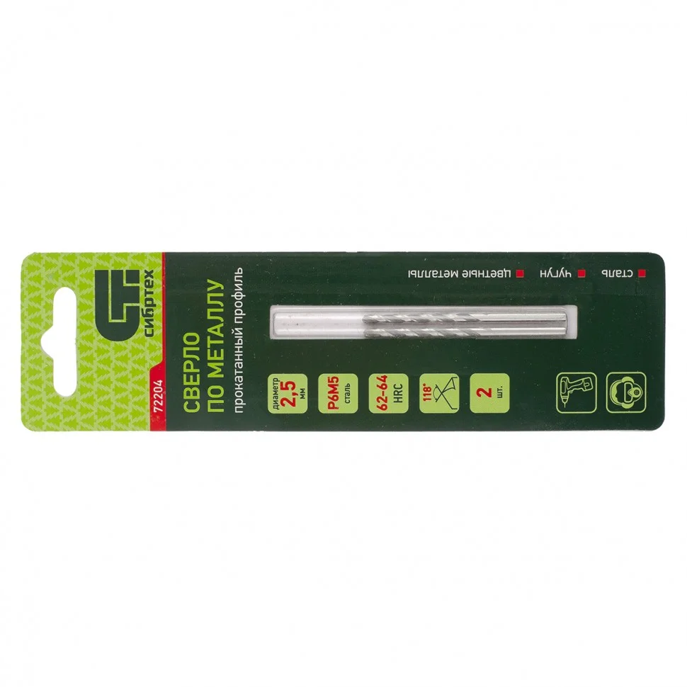 Сверло по металлу, 2.5 мм, Р6М5.2 шт Сибртех 72204