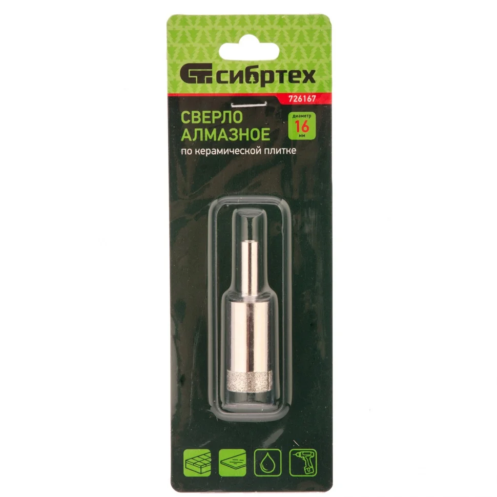 Сверло по стеклу и керамической плитке, 16 х 55 мм, цилиндрический хвостовик Сибртех 726167