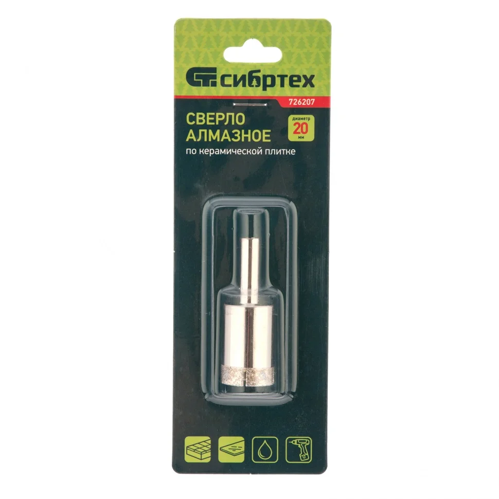 Сверло по стеклу и керамической плитке, 20 х 55 мм, цилиндрический хвостовик Сибртех 726207