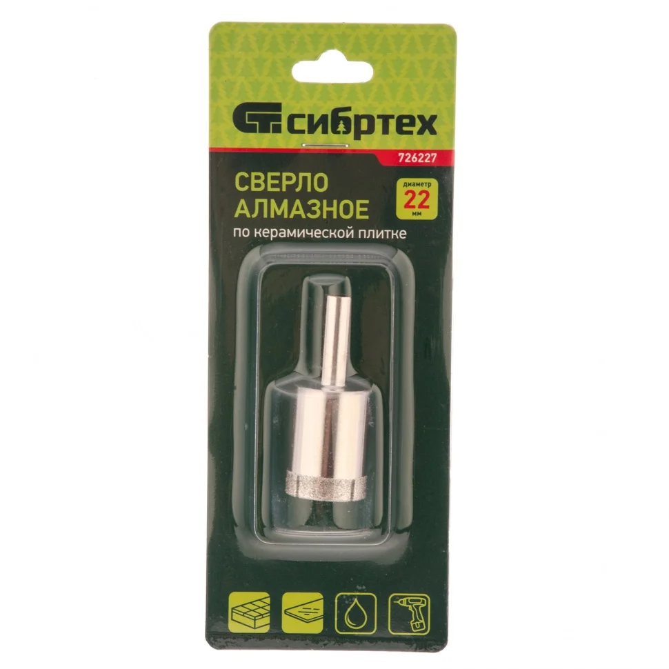 Сверло по стеклу и керамической плитке, 22 х 55 мм, цилиндрический хвостовик Сибртех 726227