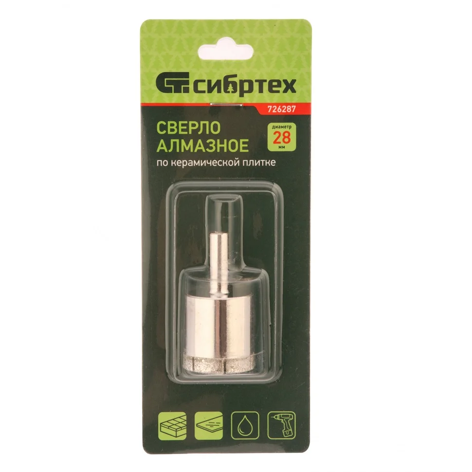Сверло по стеклу и керамической плитке, 28 х 55 мм, цилиндрический хвостовик Сибртех 726287