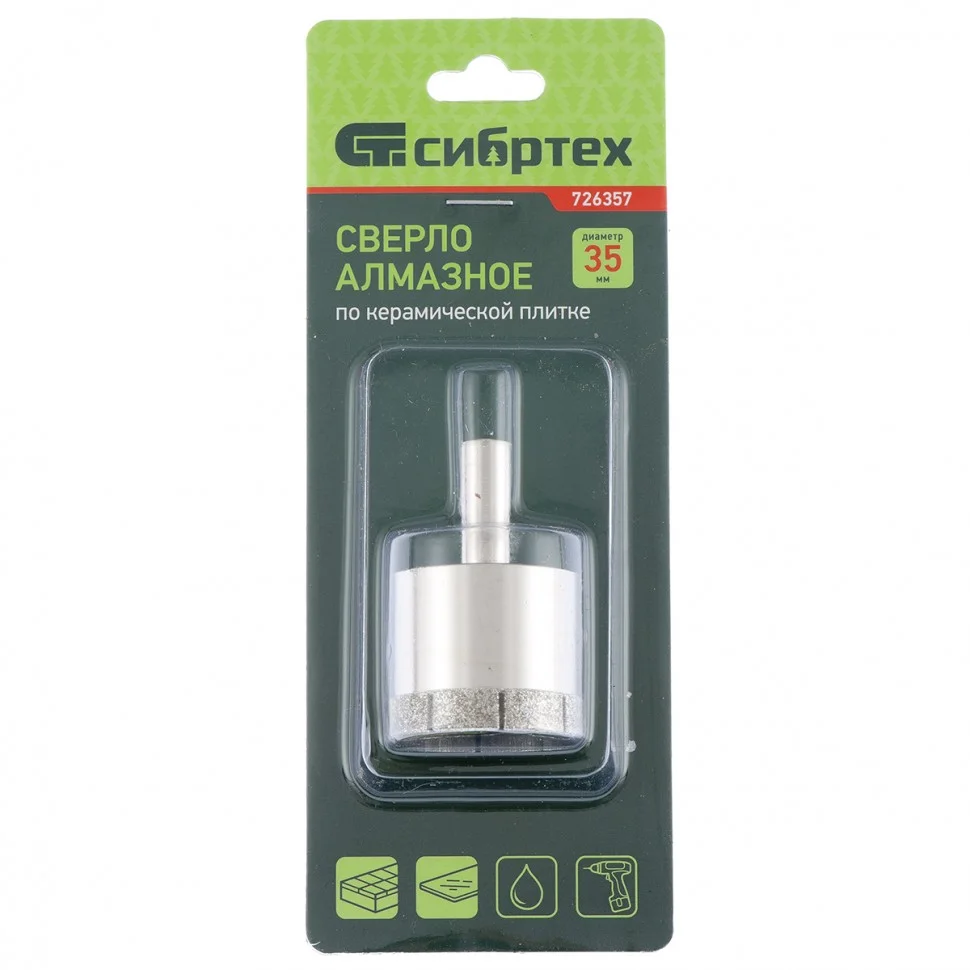 Сверло по стеклу и керамической плитке, 35 х 55 мм, цилиндрический хвостовик Сибртех 726357