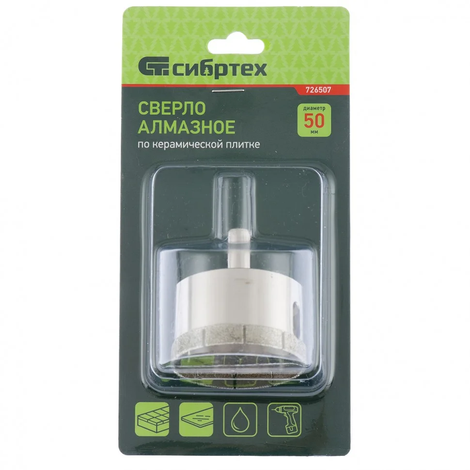 Сверло по стеклу и керамической плитке, 50 х 55 мм, цилиндрический хвостовик Сибртех 726507