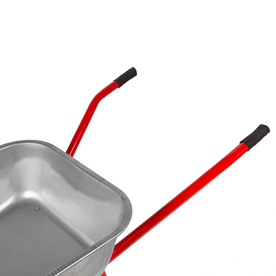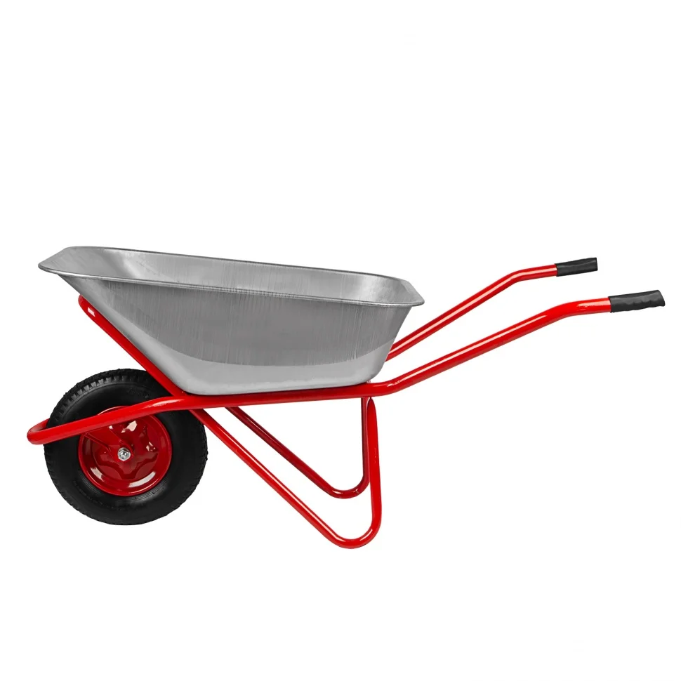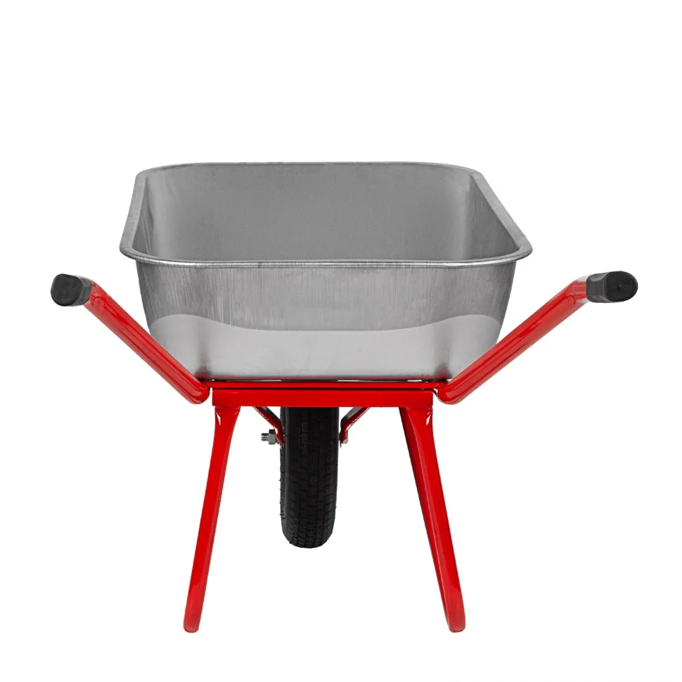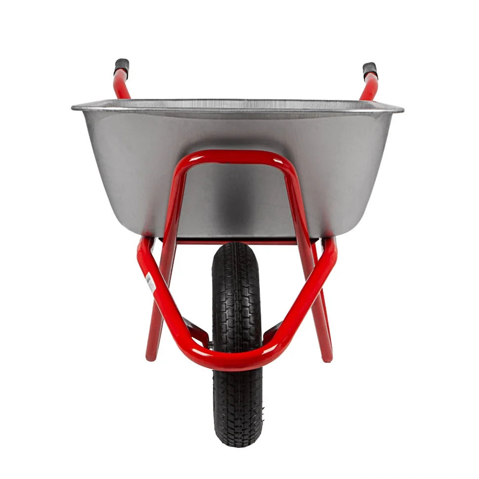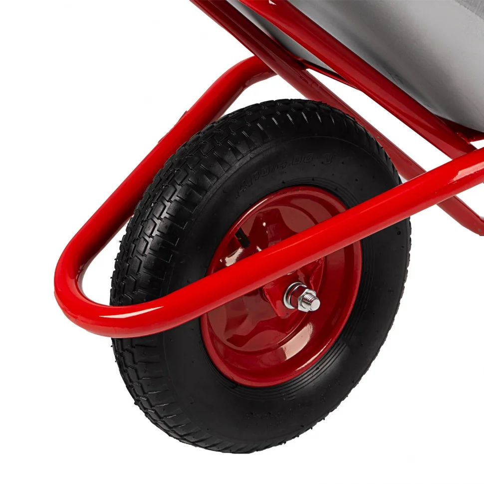 Садово-строительная тачка 689219 с кузовом объемом 110 л имеет усиленную конструкцию и увеличенное колесо, что обеспечивает ей грузоподъемность 220 кг. Тачка предназначена для перемещения как легких (листва, ветки, мусор), так и тяжелых грузов (песок, щебень, сухие строительные смеси). Пригодится во время строительства и работ на дачном участке.ПреимуществаНадежная конструкция — благодаря кузову с завальцованными бортами и дополнительной опоре рамы тачка выдерживает перевозку тяжелых грузов в интенсивном режиме.Коррозионная стойкость — кузов оцинкован, а опора, рама и колесный диск покрыты порошковой эмалью.Возможность фронтальной разгрузки — в передней части имеется специальный упор.Мягкий и плавный ход — пневмоколесо поглощает вибрации и упрощает перемещение тачки по неровной поверхности, а 2 шариковых подшипника облегчают его вращение.Маневренность — одноколесную тачку удобно разворачивать в узких местах.