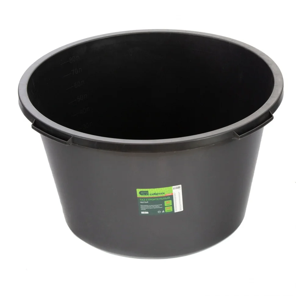 Круглый строительный таз Сибртех 814425 объемом 85 л используется для приготовления штукатурных, шпаклевочных, красящих, клеевых растворов при проведении ремонтных и отделочных работ. Пригодится таз и в быту — в нем удобно хранить и перемещать сыпучие материалы.ПреимуществаНа внутреннюю поверхность нанесена мерная шкала, что облегчает соблюдение дозировки и объема при разведении смесей.Долговечность — пластиковый таз не подвержен коррозии.Таз удобно переносить благодаря усиленным ручкам.