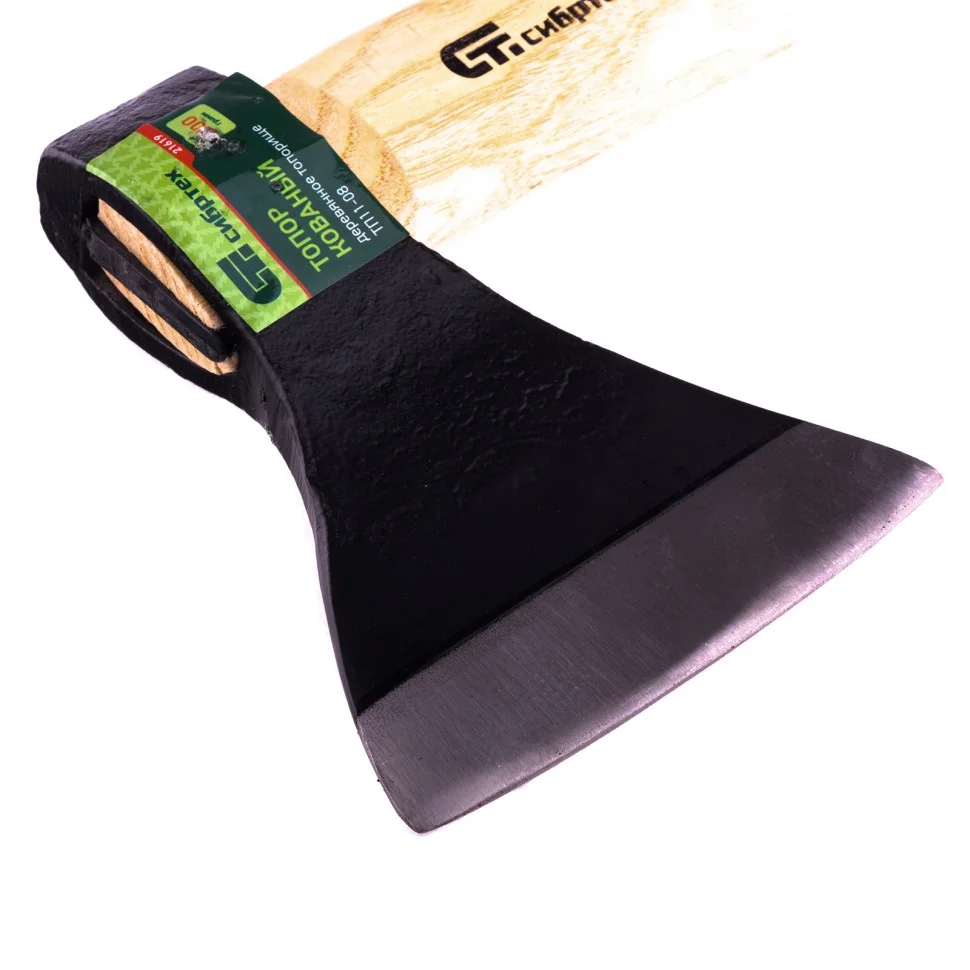 Кованый топор Сибртех ТП11-08 21619 с рабочей частью весом 800 г, в сборе с деревянным топорищем, — универсальный инструмент для бытового использования. Им можно рубить и тесать древесину различных пород, выполнять полупрофессиональные задачи. Топор пригодится владельцам дачных и сельскохозяйственных участков.ПреимуществаПрочность — рабочая часть выполнена из стали 45 методом свободной ковки.Износостойкость — режущая кромка имеет оптимальную твердость 50-52 HRC и долго держит заточку.Защита от рассыхания и разбухания — топорище из древесины покрыто бесцветным лаком.Эффективность — рукоятка длиной 390 мм позволяет наносить достаточно сильные удары.Небольшой вес полотна 800 г — даже длительная работа не вызывает усталость.