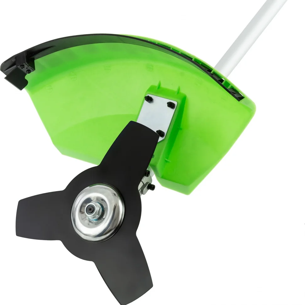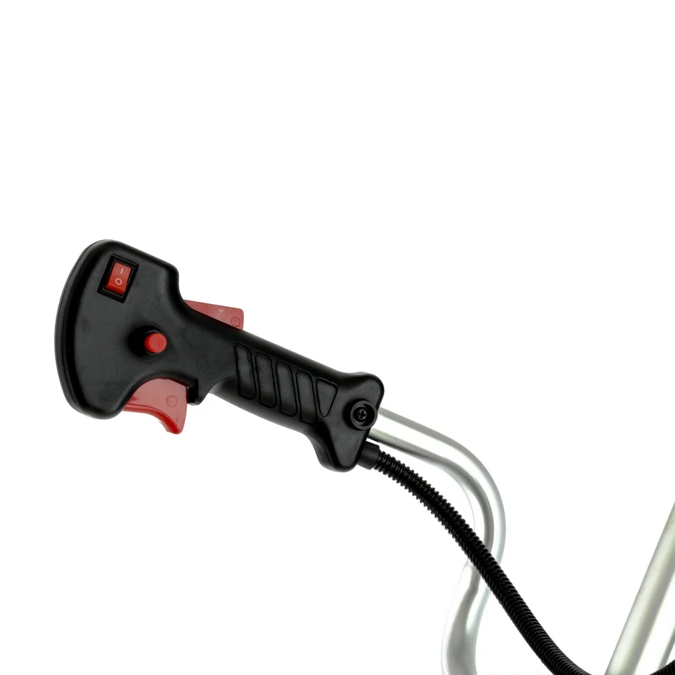 Бензотриммер Сибртех БКС-1300 предназначен для стрижки и подравнивания газонов, скашивания травы, спиливания молодого кустарника. Мощности 1,3 л.с. достаточно для облагораживания больших территорий в короткие сроки. Ширина скашивания зависит от выбранного инструмента: при использовании металлического ножа она составляет 25,5 см, лески &mdash, 42 см.Благодаря беспроводной работе оператор может отойти от дома на любое расстояние и обработать самые труднодоступные места участка: вокруг садовых насаждений, вдоль заборов и стен дома и т.д.Преимущества:Высокий ресурс поршневой группы обеспечивают качественные детали: цилиндр двигателя покрыт пористым хромом и хонингован.Блокиратор курка газа защищает оператора от травм, т.к. не дает случайно запустить триммер.Удобная канистра для приготовления топливной смеси входит в комплект поставки.Триммер очень экономично потребляет топливо &mdash, не более 1 л в час при максимальной нагрузке, поэтому не нужно часто заправлять бензобак.Прозрачные стенки топливного бака помогают контролировать количество смеси в нем и вовремя производить заправку. Канистра для приготовления топлива входит в комплект поставки.Прочный защитный кожух предотвращает отскакивание веток и камней на пользователя.Усиленное сцепление медленнее вырабатывает свой ресурс, а это значит, что триммер прослужит долгие годы.Толщина стенок штанги увеличена до 1,5 мм, что значительно повышает устойчивость к ударам, столкновениям с препятствиями и высоким нагрузкам.Полуавтоматическая триммерная катушка увеличивает длину лески при легком ударе об землю.Использование ударопрочного пластика, неразъемной штанги и классического стартера обеспечивают надежность и долговечность триммера.Эргономичная велосипедная рукоятка имеет асимметричную форму, поэтому ее удобно держать в руках.Одноплечевой ремень обеспечивает комфорт при длительной эксплуатации, т.к. разгружает руки оператора.Бензотриммер отбалансирован на заводе, что позволяет добиться точного подравнивания травы и комфортной работы даже продолжительное время.