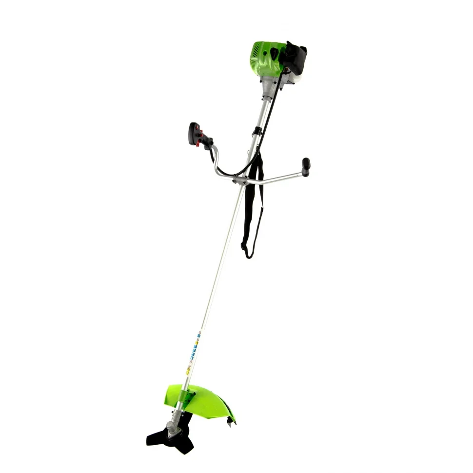 Бензотриммер Сибртех БКС-1800 предназначен для ухода за газонной травой и подравнивания небольших кустарников. Благодаря мощности 1,8 л.с. оснастка вращается со скоростью 9500 об/мин. Для разного типа рельефа можно выбрать стальной трехлопастный нож или катушку с леской, ширина скашивания составит 25,5 см и 42 см соответственно.Триммер не зависит от розеток, поэтому его можно использовать на самых отдаленных участках.Преимущества:Цилиндр двигателя покрыт пористым хромом и хонингован. Такое решение повышает качество деталей и увеличивает ресурс поршневой группы.Трехлопастный нож за несколько секунд меняется на катушку с леской, что сокращает время работы.Не нужно выключать двигатель и наклоняться для увеличения длины лески &mdash, это происходит автоматически при легком ударе шпулей о землю.Защитный кожух обеспечивает безопасную работу, т.к. не дает траве, веткам и камням отлетать на оператора.Для контроля уровня топлива стенки бака сделаны прозрачными, что позволяет вовремя заправлять топливо.Велосипедная рукоятка сделана асимметричной, поэтому ее удобно держать в руках даже продолжительное время.Наплечный ремень облегчает удержание триммера и повышает его маневренность, а оператору обеспечивает естественные движения при покосе травы.Благодаря усиленной конструкции стартера триммер надежен и долговечен.Точная балансировка триммера и эргономичная конструкция позволяют с удобством использовать его долгое время.Триммер работает на смеси масла и бензина. Удобная канистра для приготовления смеси прилагается.Вес 7 кг делает возможной продолжительную эксплуатацию и облегчает перемещение триммера до нужного места.