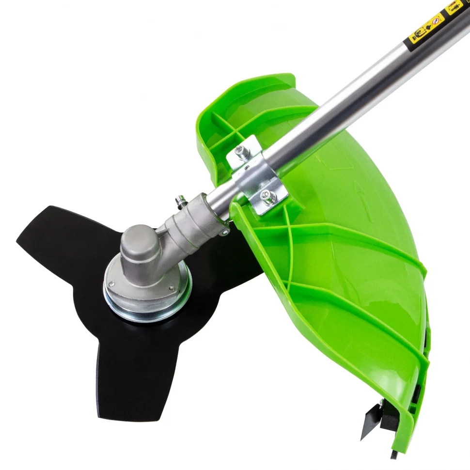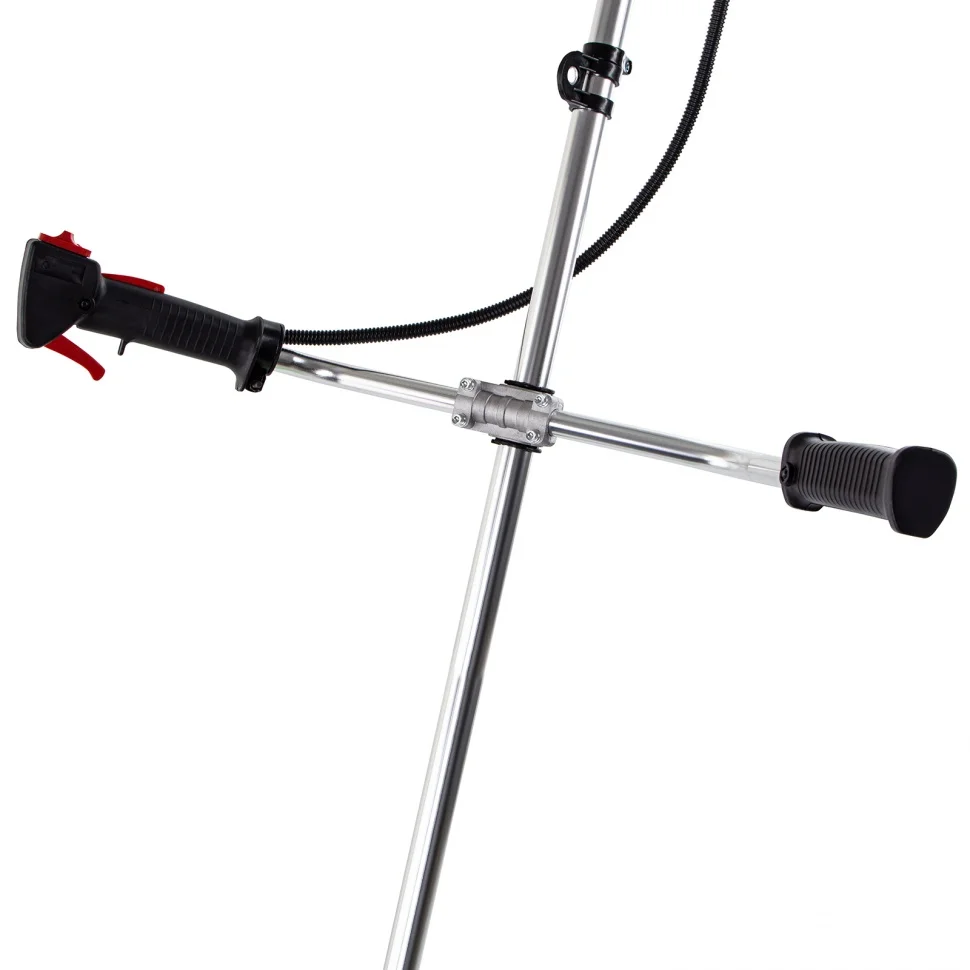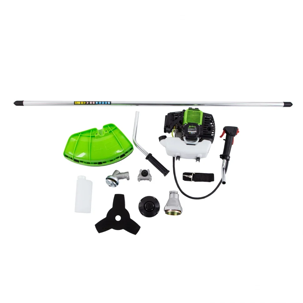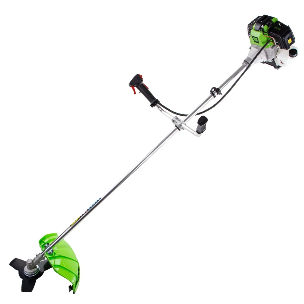 Бензиновый триммер Сибртех КС-3000Н 962555 с неразъемной штангой имеет двигатель увеличенного объема 52 куб. см, поставляется 2 частями и предназначен для ухода за дачным участком. Используется для стрижки и скашивания травы, обработки границ газонов и борьбы с сорняками. Для эффективного решения этих задач предусмотрены катушка с леской и трехлопастный нож, легко срезающий густую траву и толстые стебли. Ширина скашивания леской составляет 42 см, ножом — 25,5 см, что в сочетании с мощностью двигателя 3 л. с. обеспечивает высокую производительность триммера.ПреимуществаРедуктор рассчитан на высокие нагрузки, поэтому бензотриммер прослужит долго.Корпус двигателя изготовлен из ударопрочного пластика, устойчивого к механическим повреждениям.Блокиратор курка газа предотвращает случайный запуск триммера, обеспечивая безопасность пользователя.Прочный пластиковый кожух препятствует вылету травы, веток и мелких камней.Благодаря праймеру подкачки топлива двигатель легко запустится даже после долгого простоя.Полного бака хватает на 1 час работы, а значит, часто доливать топливо не требуется.В комплекте имеется дозатор, поэтому не нужно искать емкость для приготовления топливной смеси.Благодаря полуавтоматической системе подачи можно обновить леску прямо во время работы, слегка ударив катушкой о землю.Специальный нож на кожухе обрезает леску до нужной длины, предотвращая излишнюю нагрузку на двигатель.Конструкцией предусмотрена улучшенная антивибрационная система, позволяющая долгое время работать без усталости.Ручки велосипедного типа обеспечивают оптимальное положение рук, поэтому мотокосу удобно удерживать и направлять.Плечевой ремень равномерно распределяет вес инструмента, что позволяет снизить нагрузку на спину.