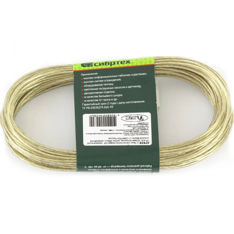 Трос металлополимерный прозрачный ПР-2.0, толщина 2.0 мм, моток 20 метров Россия Сибртех 47625