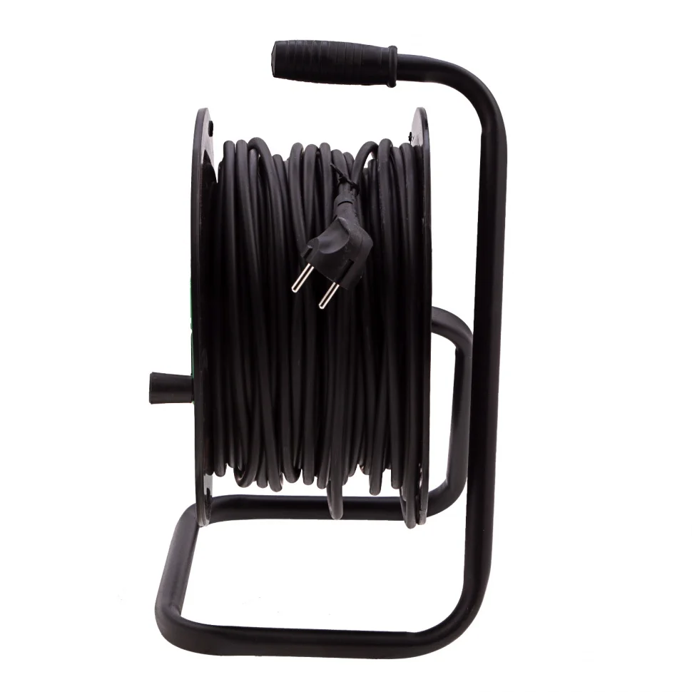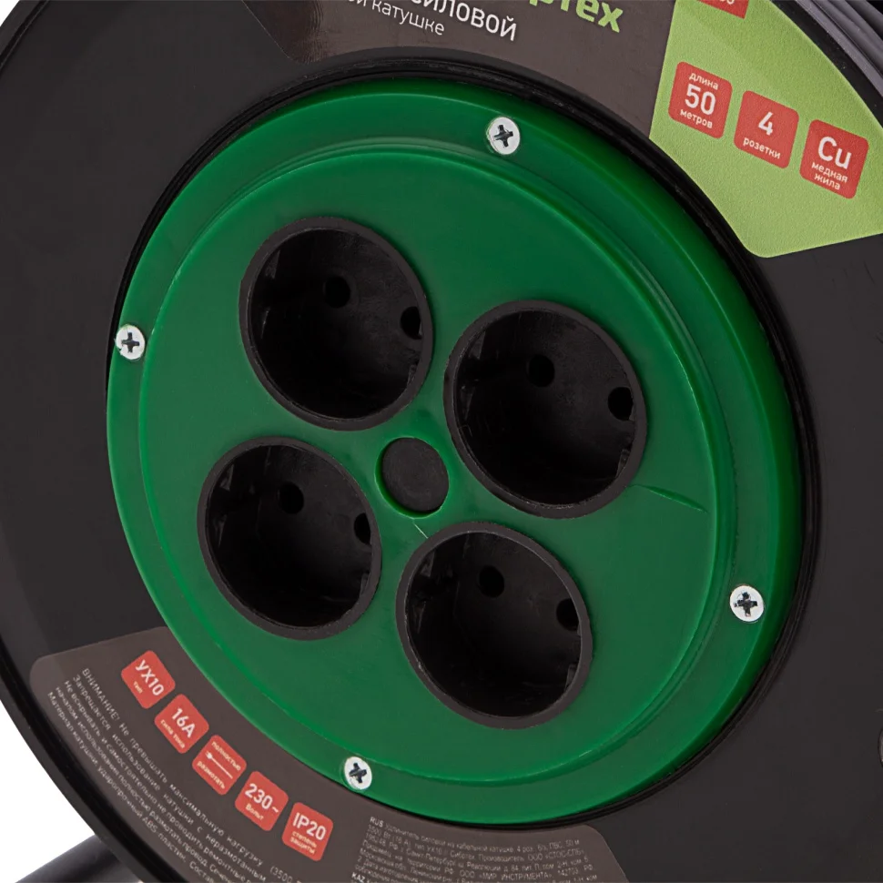 Силовой удлинитель Сибртех 95865 типа УХ10, 16 А, тип кабеля ПВС, на кабельной катушке, с 4 розетками, используется для подключения электроприборов на расстоянии до 50 м от стационарного источника электропитания. При этом суммарная мощность подключенных потребителей энергии не должна превышать 3500 Вт. Металлическая стойка сетевого удлинителя полая внутри, что облегчает конструкцию. Удлинитель пригодится во время строительных работ на дачном участке.ПреимуществаКабель быстро сматывается и разматывается при помощи удобной ручки.Риск получения электротравмы снижен благодаря прорезиненной поверхности ручки.Можно быстро включать и выключать питание посредством выключателя на корпусе удлинителя.Корпус изделия рассчитан на длительную эксплуатацию, т.к. изготовлен из гибкого ударопрочного пластика.Кабель устойчив к механическим повреждениям, т.к. покрыт двойной ПВХ-оболочкой.Характеристики удлинителя соответствуют требованиям ТР ТС 004/2011, что подтверждено соответствующим сертификатом.