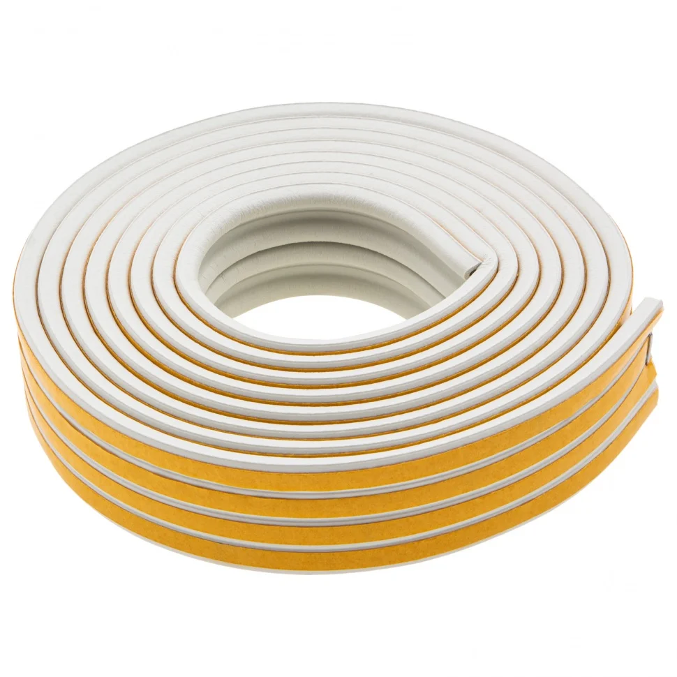 Белый резиновый уплотнитель Сибртех 88907 длиной 12 м, профиль «Р», предназначен для герметизации и уплотнения оконных и дверных блоков с целью исключения сквозняков и вибраций, защиты от влаги и пыли, создания эффективной тепло- и звукоизоляции. Изделие снижает энергетические и экономические затраты. P профиль 9 x 5,5 мм подойдет для щелей размером 3-5 мм.ПреимуществаИзготовлен из износостойкой вспененной резины EPDM.Легко восстанавливает форму после сжатия, не твердеет.Выдерживает большие колебания температуры.Имеет бумажный лайнер для защиты клейкого слоя с высокой адгезией от высыхания.Рассчитан на долгий срок службы.
