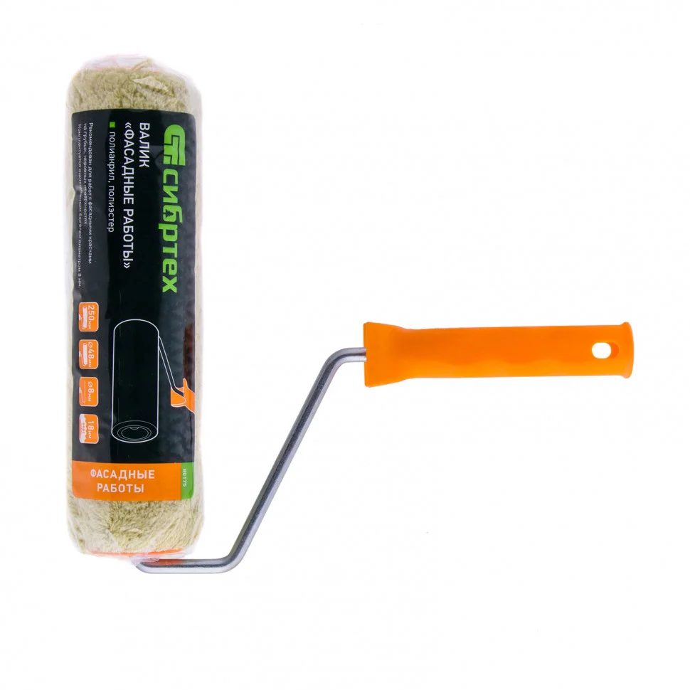Валик Сибртех «Фасадные работы» 80175 с ворсом 18 мм из полиакрила и полиэстера, роликом 250 х 48 мм, ручкой 8 мм, рассчитан на наружные работы с фасадными красками. Валик эффективен для обработки поверхностей с грубой фактурой и неровностями. Полиакрил в составе шубки повышает ее формостойкость и устойчивость к разрывным нагрузкам.ПреимуществаДолговечность — благодаря новейшей технологии изготовления Termofusion Coinjection валик отличается высоким ресурсом и износостойкостью.Быстрая очистка и замена — валик классической конструкции с трубкой внутри устанавливается и снимается за несколько секунд.Равномерное нанесение лакокрасочных материалов — края валика обработаны, и на нем нет шва.Прочность — шубка не отклеивается от ролика, т.к. закреплена термическим методом.Защита от воздействия влаги — бюгель оцинкован, что предотвращает образование коррозии.Ширина 250 мм — валик позволяет быстро окрашивать большие участки.Комфортная работа — свободно вращающийся ролик не заедает во время окрашивания, что повышает отдачу ЛКМ и уменьшает усталость мастера.