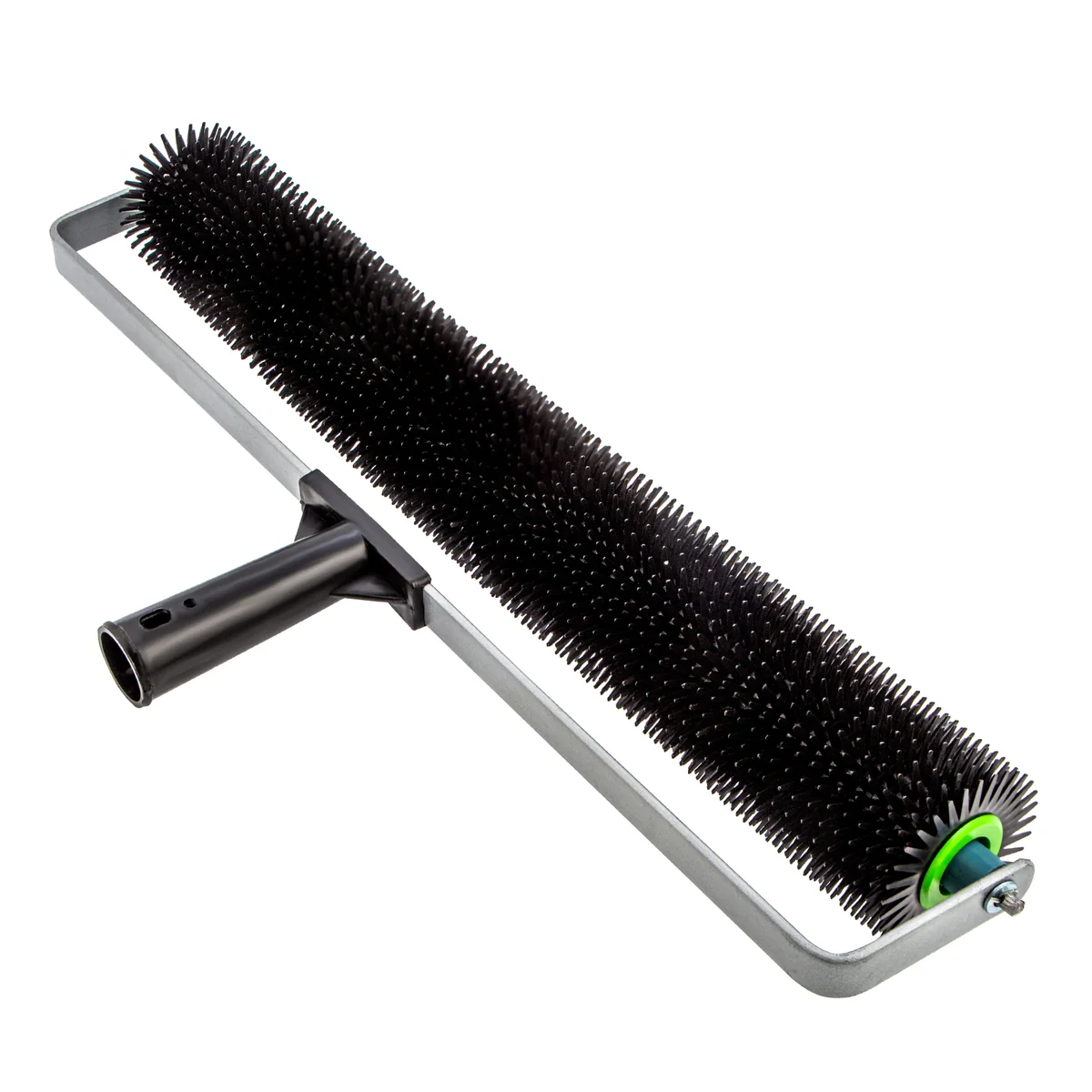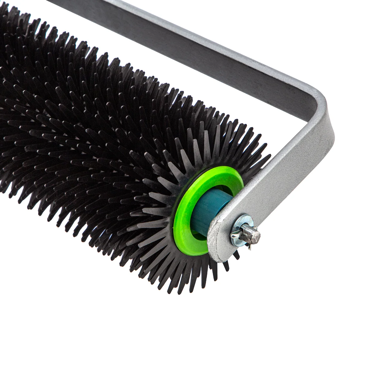 Валик игольчатый Сибртех 81110 с ручкой, длина 240 мм, применяется при монтаже наливных полов, а также при работе с другими вязкими материалами для удаления воздушных пузырей и полостей между рабочими слоями. Благодаря ширине 500 мм валик можно использовать на поверхности большой площади. Иголки длиной 14 мм подходят для покрытий небольшой толщины.Преимущества Иглы за счет острой формы глубже проникают в раствор, что обеспечивает эффективность работы. Рукоятка подходит под удлиняющий стержень. Валик легко отмывается от раствора, поэтому уход за ним очень простой.