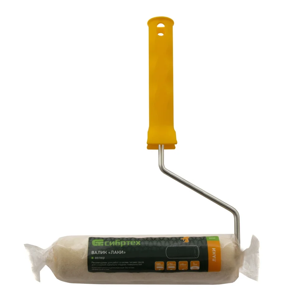 Валик Сибртех «Лаки» 80242 с ворсом длиной 5 мм из велюра, ручкой 6 мм, роликом 180 х 36 мм, обеспечивает нанесение ЛКМ тонким слоем, что делает его лучшим помощником для работ с лаками на гладких поверхностях. Валик шириной 180 мм быстро справляется с окрашиванием участков большой площади.ПреимуществаДолговечность — валик изготовлен с применением новейшей технологии Termofusion Coinjection.Быстрая замена и очистка — валик классической конструкции с трубкой внутри снимается и устанавливается за несколько секунд.Надежность — термически приклеенная шубка не отслаивается от ролика, поэтому он прослужит долго.Защита от коррозии — оцинкованный бюгель устойчив к воздействию влаги.Равномерное нанесение материала — шубка не имеет шва, а ее обработанные края не топорщатся, поэтому валик не оставляет следов на поверхности.Комфортная работа — ролик свободно вращается и не заедает во время окрашивания.