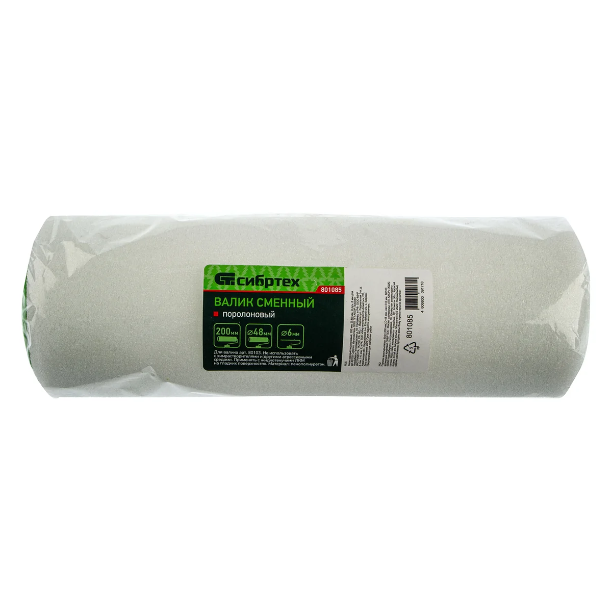 Поролоновый сменный валик Сибртех 801085 шириной 200 мм и диаметром 48мм используется в качестве сменного для валика Сибртех 80103. Он предназначен для покрытия гладких поверхностей невязкими водно-дисперсионными красками, например, латексными и акриловыми, а также пропитками, водно-клеевыми составами и грунтовкой. Шубка из поролона отлично впитывает лакокрасочные материалы, обеспечивая высокую производительность работы. Не рекомендуется использование поролоновых валиков с ЛКМ содержащими в составе едкие химические элементы.ПреимуществаБлагодаря сменному ролику валик Сибртех 80103 можно использовать многократно.Бесшовная структура шубки обеспечивает равномерное нанесение краски и не оставляет следов на поверхности.Ширина 200 мм оптимально подходит для работы на больших поверхностях.