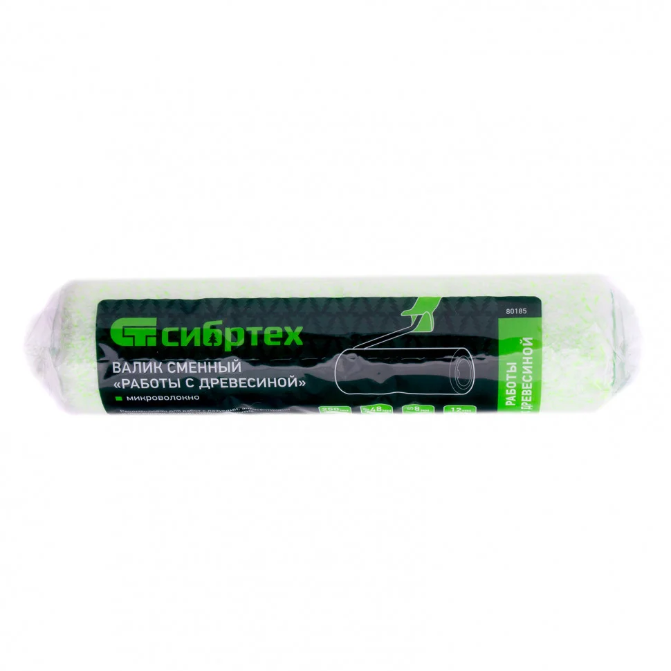 Сменный валик Сибртех «Работы с древесиной» 80185 шириной 250 мм, с ворсом 12 мм из микроволокна, диаметром 48 мм, подходит под ручку 8 мм. Он равномерно наносит на деревянный поверхности жидкие ЛКМ: антисептики, грунтовки, пропитки, защитные составы, лазурь и другие невязкие материалы. За счет ширины 250 мм валик оптимален для окрашивания больших поверхностей.ПреимуществаЭффективная работа — шубка из микроволокна отлично впитывает лакокрасочные материалы и позволяет наносить их ровным тонким слоем.Быстрая установка — валик имеет классическую конструкцию с внутренней трубкой, поэтому подготовка к работе не займет много времени.Равномерное окрашивание — шубка выполнена без швов, а ее края аккуратно острижены, поэтому валик не оставляет следов на поверхности.Высокий ресурс — термически приклеенная шубка не соскальзывает и не отслаивается от ролика, поэтому валик выдерживает многократное использование.Высокое качество — валик изготовлен с применением новейшей технологии Termofusion Coinjection.