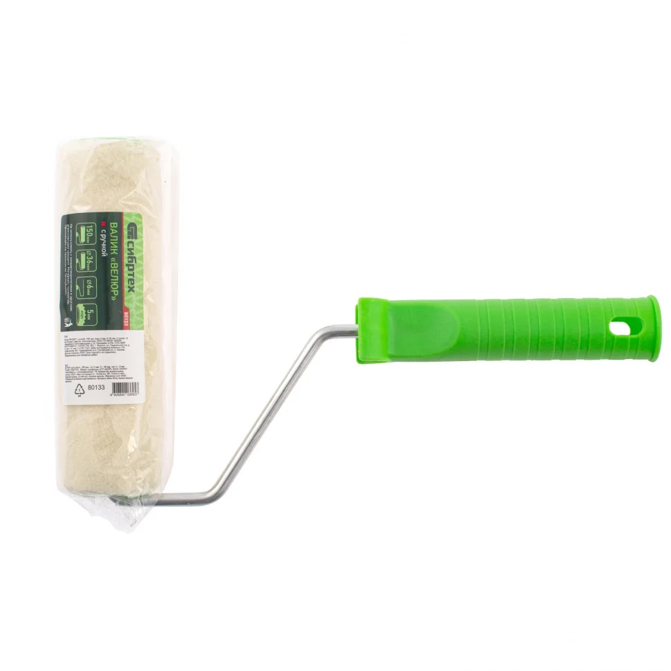Валик Сибртех «ВЕЛЮР» 80133 с ручкой 6 мм, роликом 150 х 36 мм и ворсом 5 мм, применяется для окрашивания гладких поверхностей. Обеспечивает нанесение материалов максимально тонким слоем, поэтому оптимален для работы с лаками. Велюровая шубка изготовлена из натуральной шерсти с полиакрилом, что повышает износостойкость валика.ПреимуществаНадежная конструкция — фланцы приварены ультразвуком, поэтому валик не деформируется даже при частой установке и снятии с бюгеля.Легкий демонтаж — быстросъемная система крепления ролика позволяет чистить его без ручки и менять в случае изнашивания.Прочность — шубка приклеена к ролику термическим способом (технология Termofusion), поэтому не отслаивается при многократном использовании.Долговечность — оцинкованный бюгель отличается высокой стойкостью к образованию коррозии.Эффективное окрашивание — ролик вращается свободно, что повышает коэффициент отдачи краски и делает работу более комфортной.Компактность — за счет небольшой ширины 150 мм валиком удобно работать в труднодоступных местах.
