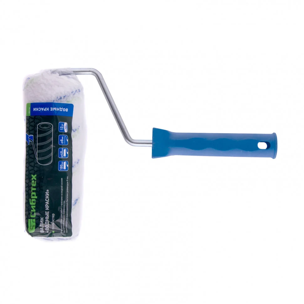 Валик Сибртех «Водные краски» 80136 с ворсом из полиэстера 12 мм, ручкой 8 мм и роликом 180 х 48 мм, используется для окрашивания поверхностей средней гладкости. Он оптимален для работы с красками на водной основе: латексными, акриловыми, силиконовыми и минеральными. Применяется для выполнения подготовительных и общих малярных работ.ПреимуществаИзносостойкость — валик изготовлен с использованием новейшей технологии Termofusion Coinjection.Высокое качество работ — края ролика обработаны, а шубка не имеет шва, поэтому валик не оставляет следов на поверхности.Возможность многократного использования — оцинкованный бюгель устойчив к коррозии, а термически приклеенная шубка не отслаивается от ролика.Комфортная работа — валик классической конструкции с трубкой внутри быстро снимается и устанавливается на бюгель, а свободно вращающийся ролик обеспечивает наибольший коэффициент отдачи краски.Ширина 180 мм — валик подходит для покраски больших поверхностей.