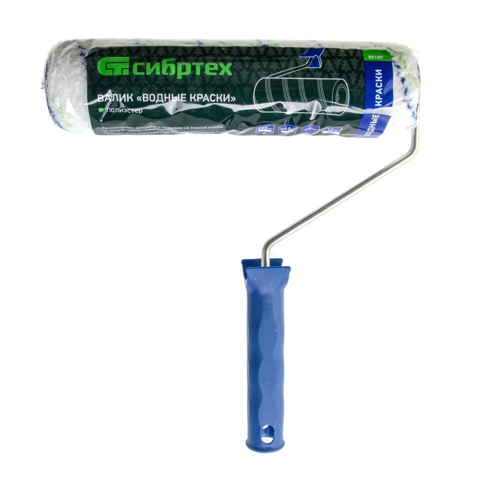 Валик Сибртех «Водные краски» 80187 с ворсом из полиэстера 12 мм, ручкой 6 мм и роликом 250 х 48 мм, используется для окрашивания поверхностей средней гладкости. Он оптимален для работы с красками на водной основе: латексными, акриловыми, силиконовыми и минеральными. Применяется для выполнения подготовительных и общих малярных работ.ПреимуществаИзносостойкость — валик изготовлен с использованием новейшей технологии Termofusion Coinjection.Высокое качество работ — края ролика обработаны, а шубка не имеет шва, поэтому валик не оставляет следов на поверхности.Возможность многократного использования — оцинкованный бюгель устойчив к коррозии, а термически приклеенная шубка не отслаивается от ролика.Комфортная работа — валик классической конструкции с трубкой внутри быстро снимается и устанавливается на бюгель, а свободно вращающийся ролик обеспечивает наибольший коэффициент отдачи краски.Ширина 250 мм — валик подходит для покраски больших поверхностей.