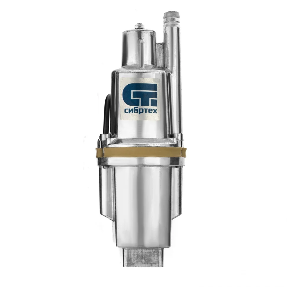 Вибрационный насос Сибртех СВН300-10 99301 мощностью 300 Вт, с системой верхнего забора жидкости и кабелем длиной 10 м, обеспечивает напор до 75 м и предназначен для подачи чистой воды со скоростью 1200 л/ч из колодцев, резервуаров, емкостей и водоемов с глубины до 5 м. Его можно использовать в системах полива и водоснабжения на даче. Насос выдает стабильное рабочее давление 7,5 бар и может обеспечивать несколько точек водоразбора, например, на кухне и в душевой кабине.ПреимуществаПростая установка — на корпусе предусмотрены проушины для закрепления троса.Прочность — алюминиевый корпус надежно защищает внутренние элементы от механических повреждений.Надежность — насос осуществляет забор воды через верхние отверстия, что снижает риск перегрева.Безопасность — мембрана насоса изготовлена из пищевой резины, поэтому вода на выходе безвредна для здоровья.Высокое качество сборки — элементы корпуса закреплены болтами и не расшатываются от вибраций.Герметичность — насос имеет степень защиты IPX8, что исключает попадание воды на электронные компоненты.Удобное подключение — сетевой кабель длиной 10 м обеспечивает доступ к розетке вдали от источника воды.Минимальное обслуживание — в насос не нужно заливать масло и воду.Готовность к работе — трос для установки насоса и хомут для подключения шланга уже есть в комплекте.Малый вес 3,2 кг — насос можно транспортировать и устанавливать в одиночку.