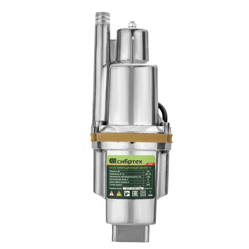 Вибрационный насос СВН300-10, верхний забор, 300 Вт, напор 75 м, 1200 л/ч, кабель 10 м Сибртех, 1200 л/ч 99301