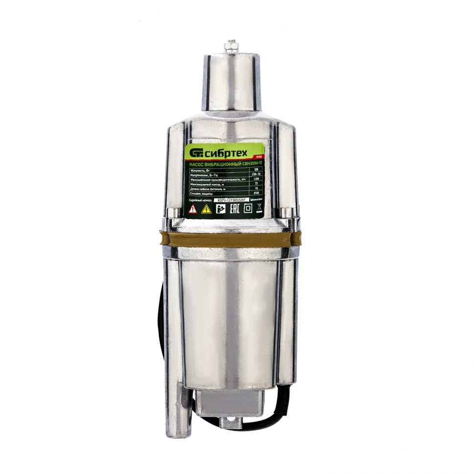 Вибрационный насос СВН300Н-10, нижний забор, 300 Вт, напор 75 м, 1200 л/ч, кабель 10 м Сибртех 99305