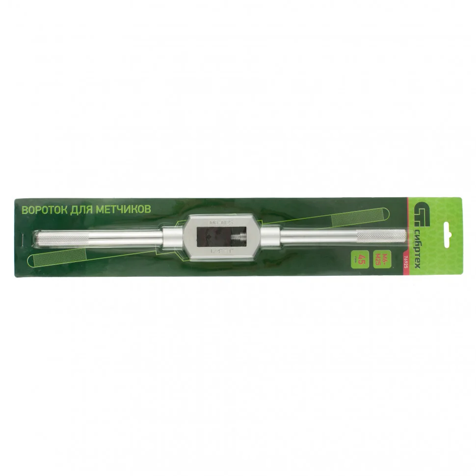 Вороток для метчиков Сибртех 76925, М6-М25, предназначен для ручного нарезания внутренней резьбы в отверстиях и цилиндрических деталях. Подходит для зажима метчиков с резьбой М6-М25. Вороток используется при ремонте резьбовых соединений и пригодится в мастерской или гараже.ПреимуществаВысококачественная инструментальная сталь - вороток отличается прочностью, надежностью и устойчивостью к значительным нагрузкам.Регулируемый винтовой механизм - метчик надежно фиксируется в воротке.Специальные насечки на рукоятках - инструмент не скользит в руках, и с ним комфортно работать.