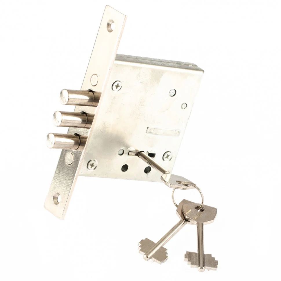 Замок врезной Сибртех ЗВ-1 91665, сувальдного типа, используется для запирания внутренних дверей жилых и хозяйственных помещений. Замок имеет 1 класс секретности - его невозможно вскрыть методом подбора ключей.ПреимуществаБлагодаря цинковому покрытию замок не боится ржавчины, а значит, прослужит долго.Открыть или закрыть замок изнутри можно только ключом, что исключает случайное запирание двери.В комплекте 3 ключа, поэтому изготавливать дубликаты не требуется.