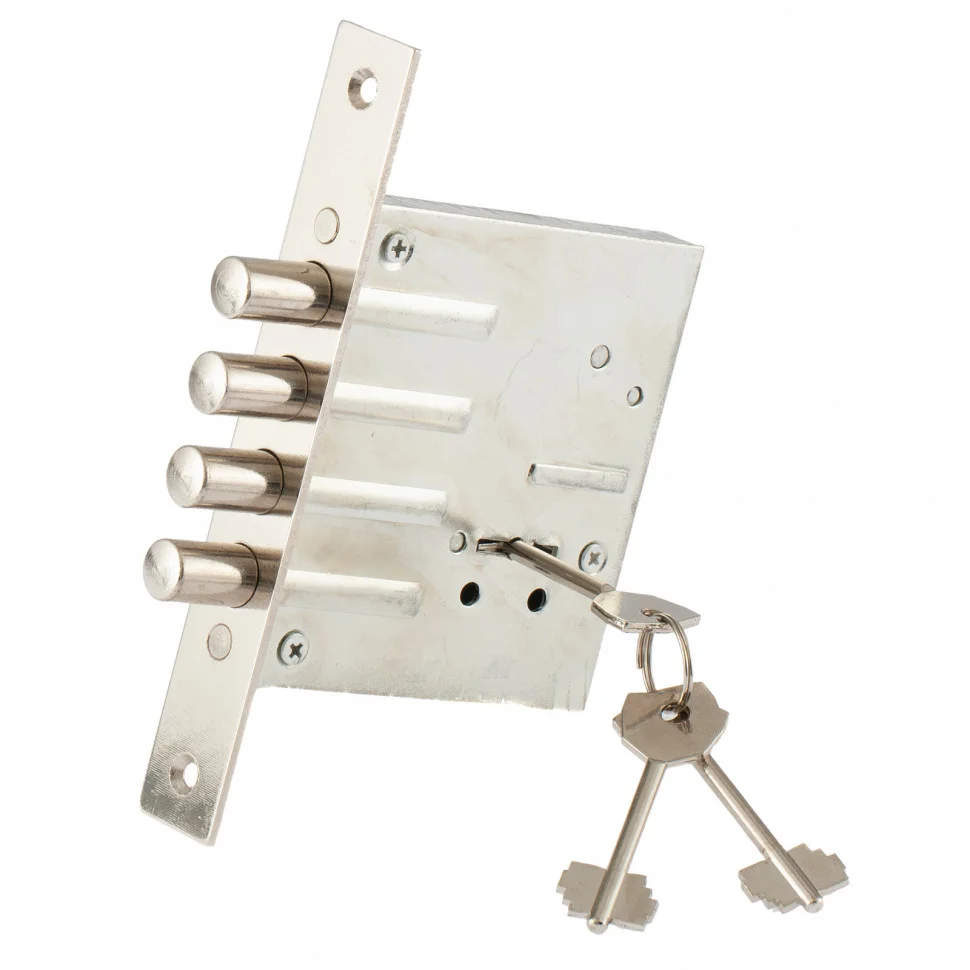 Замок врезной Сибртех ЗВ-3 91668, сувальдного типа, используется для запирания внутренних дверей жилых и хозяйственных помещений. Замок имеет 1 класс секретности - его невозможно вскрыть методом подбора ключей.ПреимуществаБлагодаря цинковому покрытию замок не боится ржавчины, а значит, прослужит долго.Открыть или закрыть замок изнутри можно только ключом, что исключает случайное запирание двери.В комплекте 3 ключа, поэтому изготавливать дубликаты не требуется.