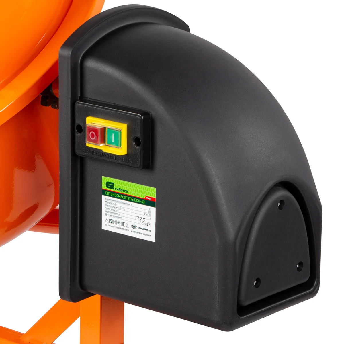 Бетоносмеситель Сибртех БСЛ-63 95469 объемом 63 литра и мощностью 300 Вт применяется при производстве штукатурки для отделки стен, подвижных бетонных растворов для работ с фундаментом и стяжки пола, клеевых смесей для укладки плитки. Малый размер барабана позволяет использовать устройство в небольших помещениях, без труда перемещая его в нужное место. При максимально допустимом заполнении на выходе получится до 40 л готовой смеси. Венец из прочной перфорированной стали выдерживает несколько рабочих циклов с небольшими перерывами, что позволяет ускорить процесс работы.