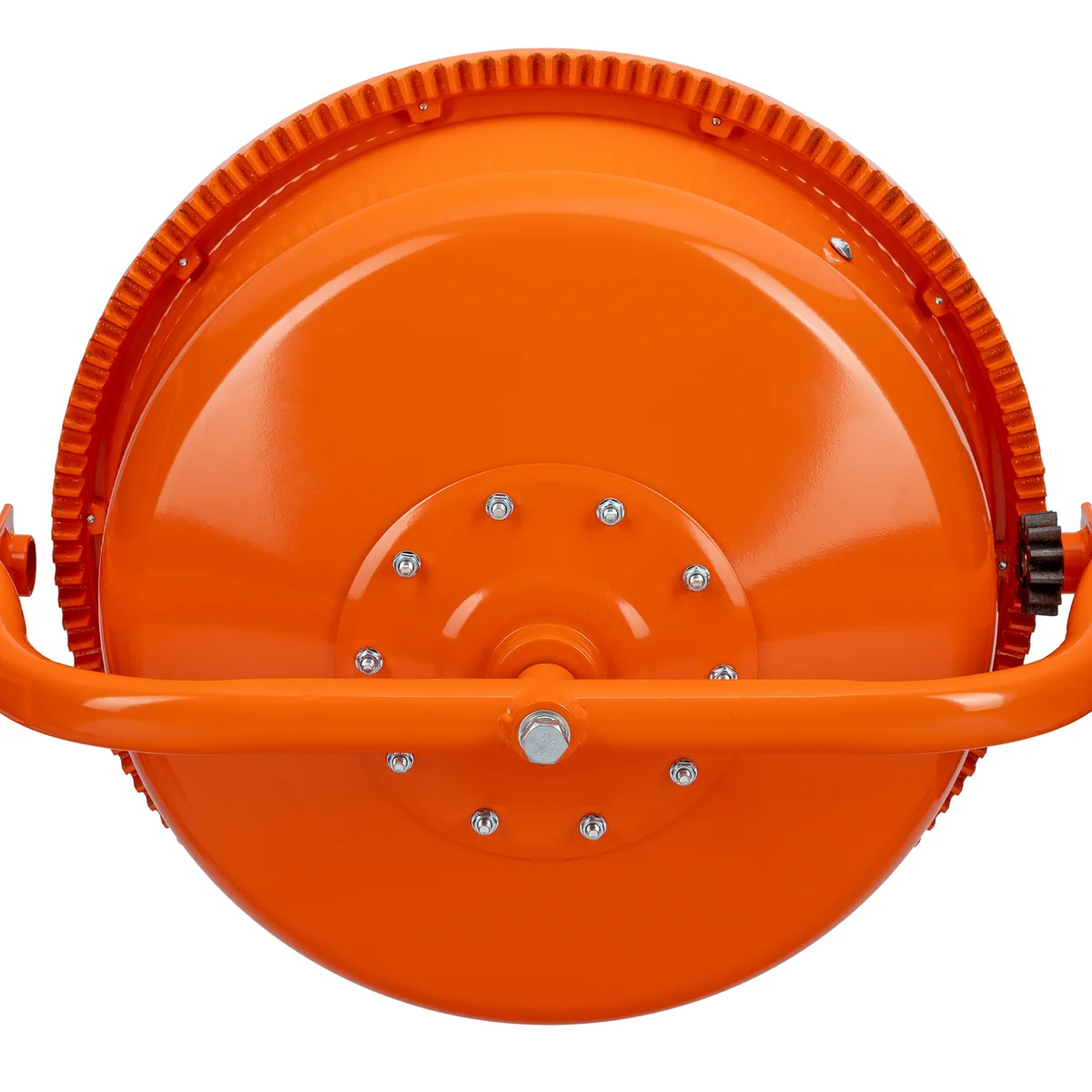 - Удобная загрузка и выгрузка смеси — барабан наклоняется при помощи маховика и легко фиксируется в нужном положении.