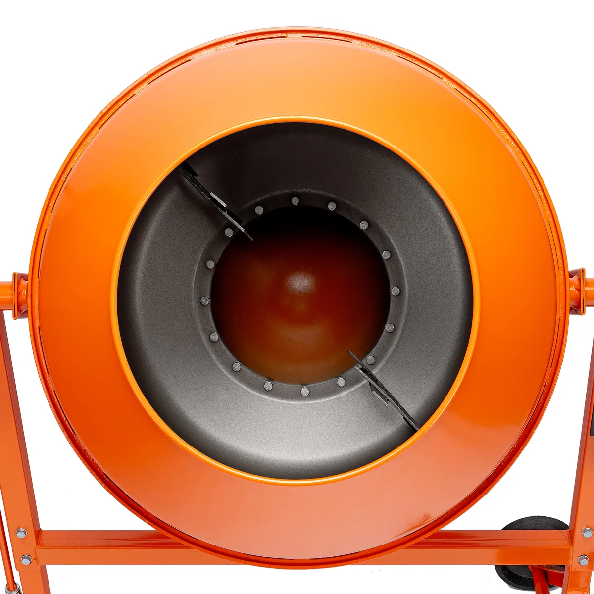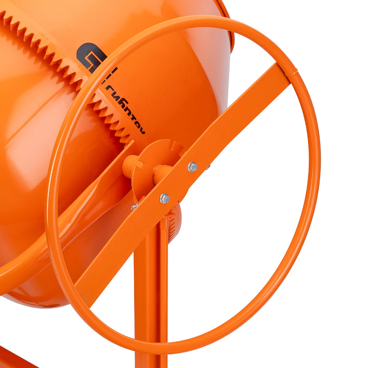 - Удобная загрузка и выгрузка смеси — барабан наклоняется при помощи маховика и легко фиксируется в нужном положении.