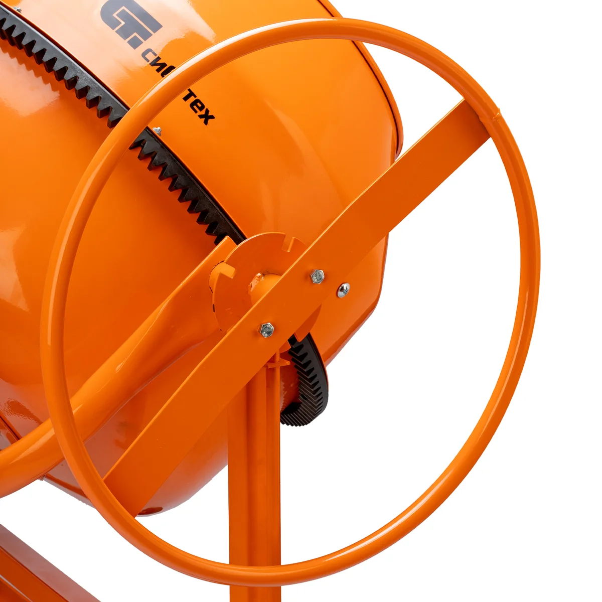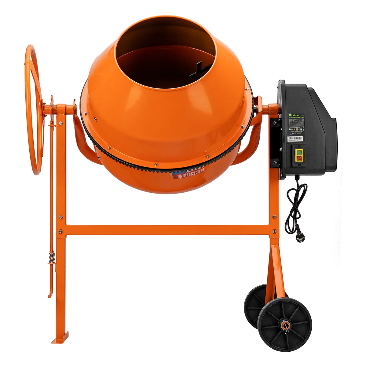 - Удобная загрузка и выгрузка смеси — барабан наклоняется при помощи маховика и легко фиксируется в нужном положении.