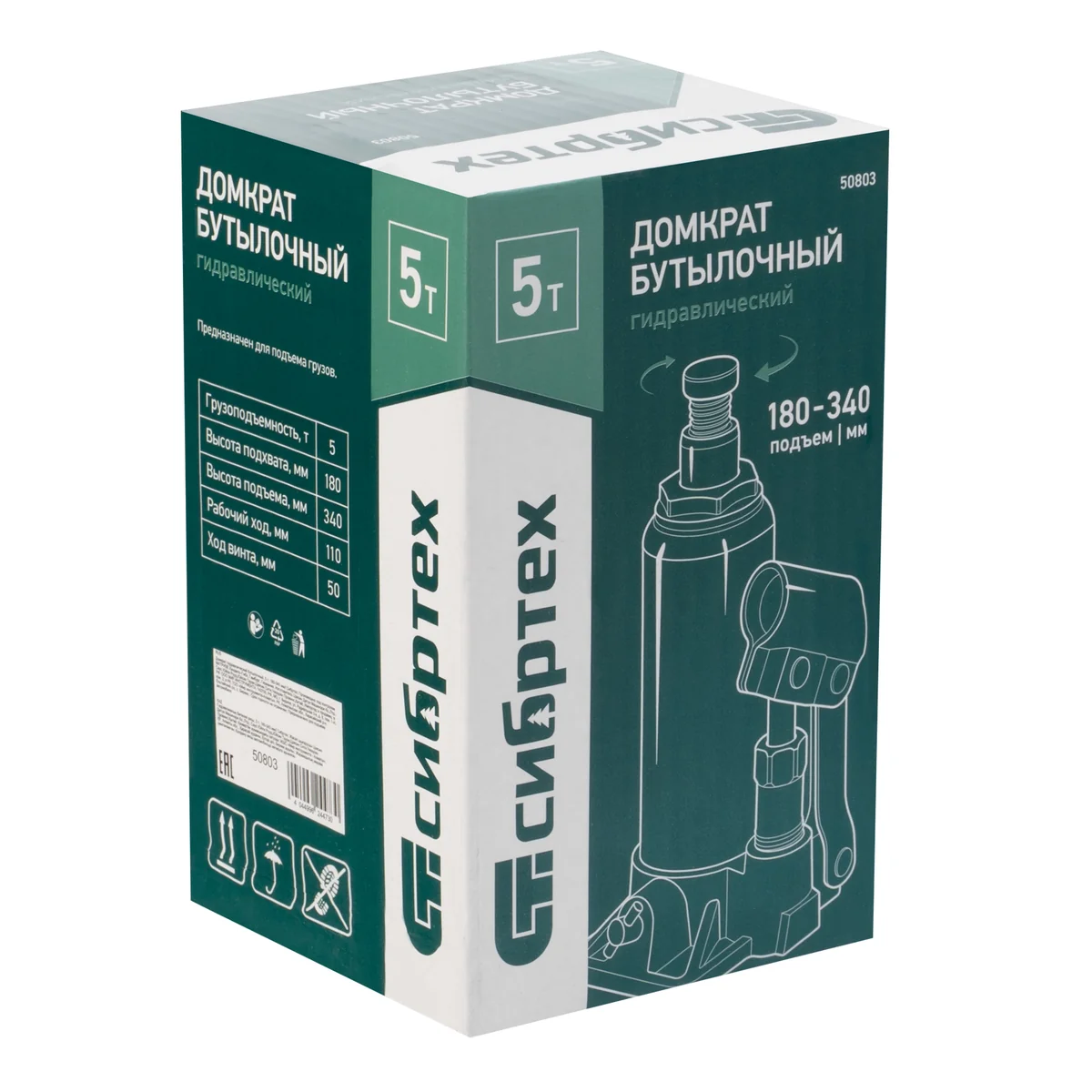 Домкрат гидравлический бутылочный, 5 т, 180-340 мм Сибртех 50803
