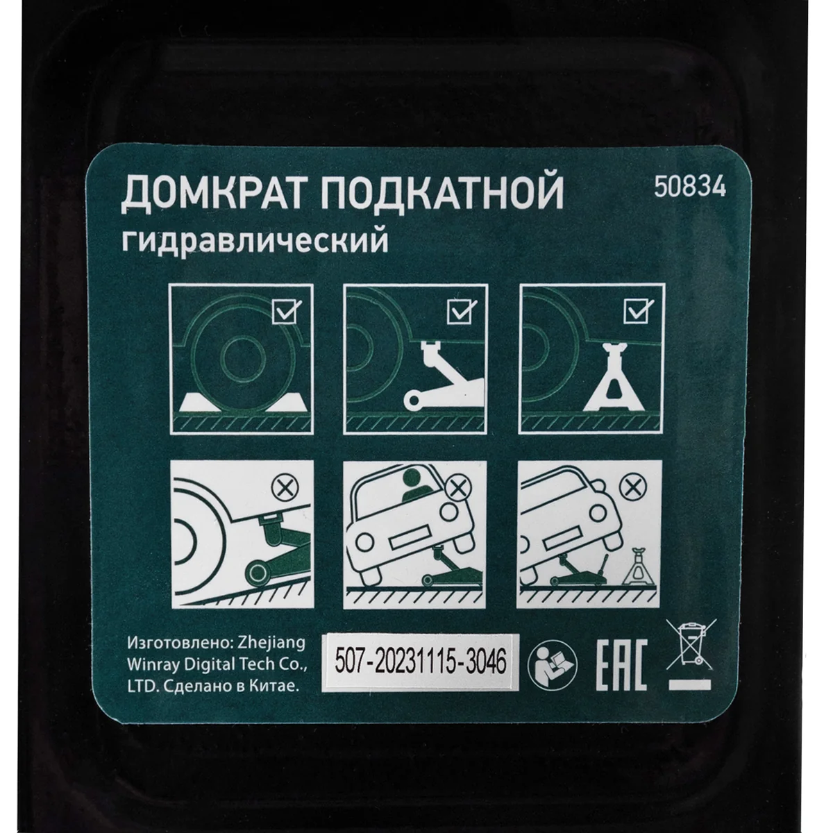 Гидравлический подкатной домкрат Сибртех 50834 с высотой подхвата 135 мм предназначен для подъема грузов массой до 2 т на высоту до 320 мм. Применяется для обслуживания автомобилей со стандартным клиренсом. Компактный домкрат подходит для самостоятельного использования автовладельцами.