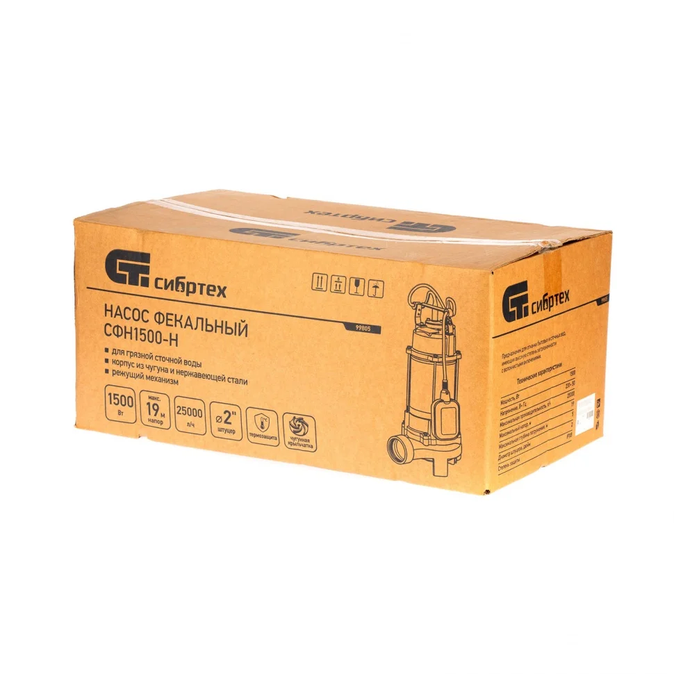 Фекальный насос СФН1500-Н, 1500 Вт, напор 19 м, 25000 л/ч, нож Сибртех99805