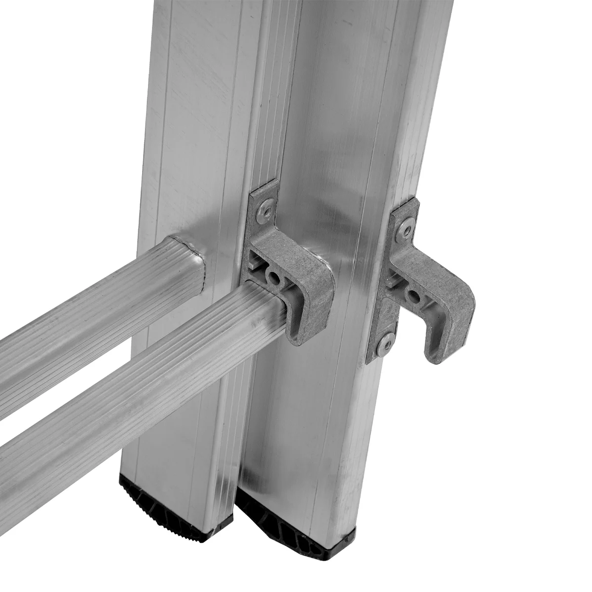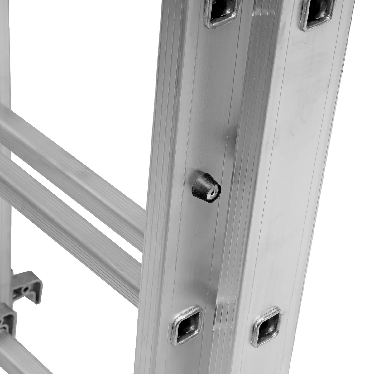 - Устойчивость — лестница оснащена съемным стабилизатором, выравнивающим ее положение на горизонтальных поверхностях.