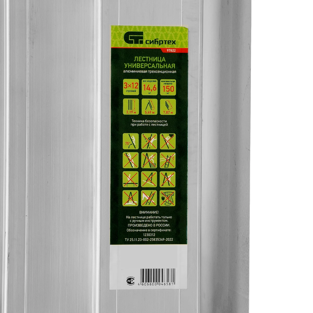 Лестница, 3 х 12 ступеней, алюминиевая, трехсекционная, Россия, Сибртех 97822