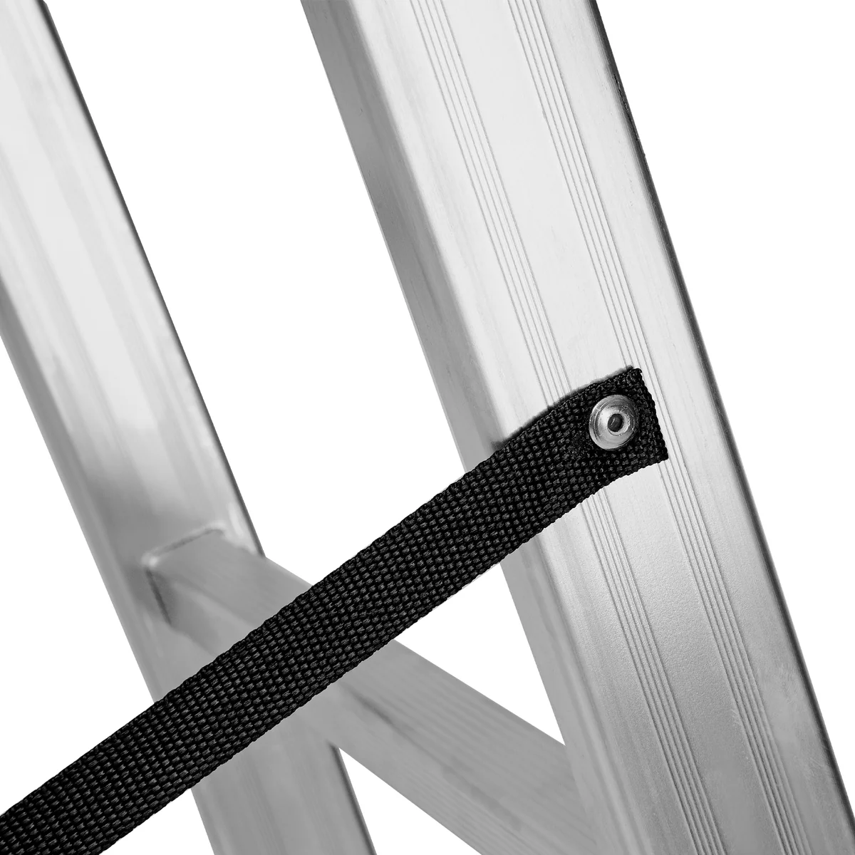 - Устойчивость — лестница оснащена съемным стабилизатором, выравнивающим ее положение на горизонтальных поверхностях.