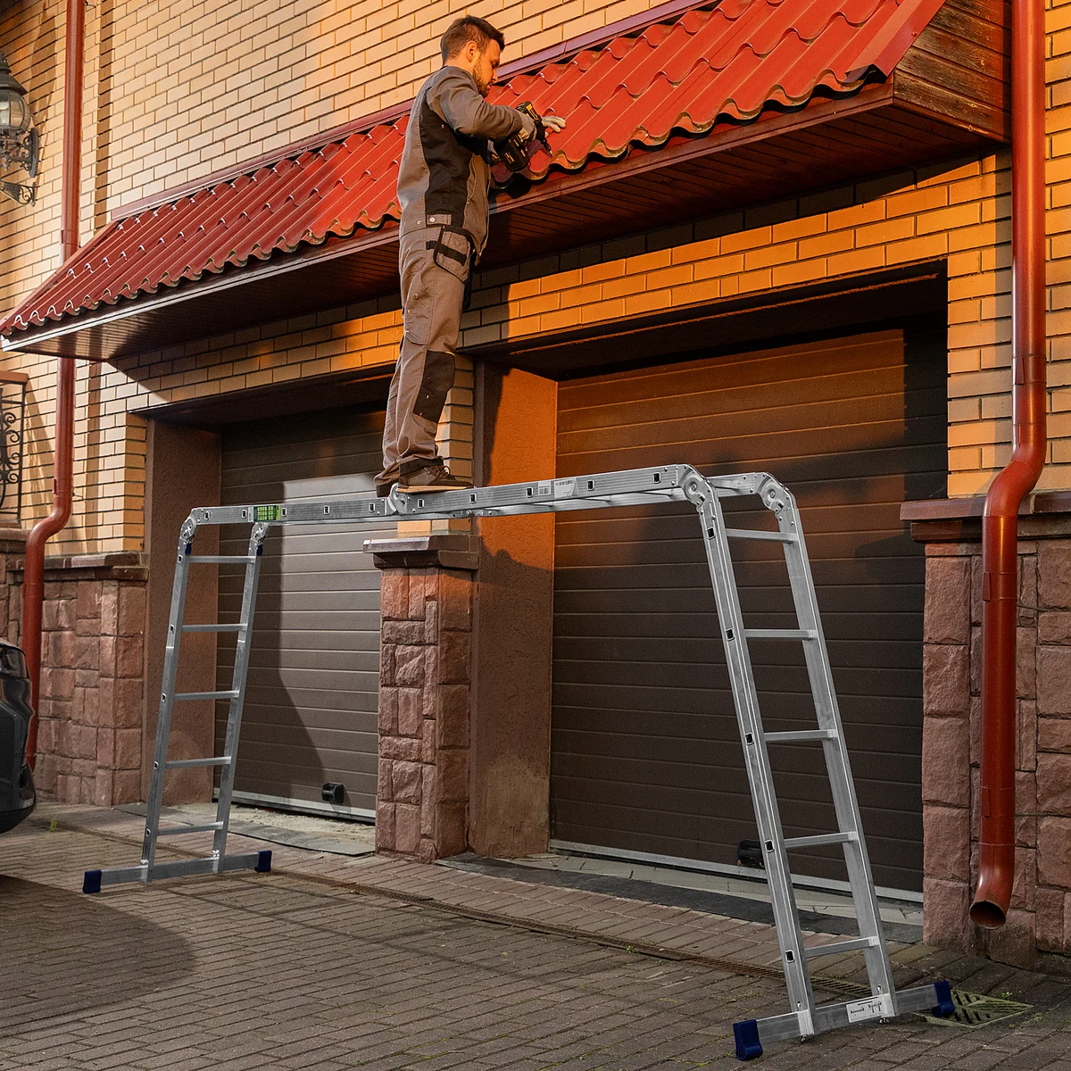 Шарнирная алюминиевая лестница Сибртех 97883 представляет собой 4 секции по 5 ступеней, которые можно настроить в нескольких рабочих положениях. Она может использоваться в качестве приставной лестницы, двухсторонней стремянки и помоста. Будет полезна как в быту, так и на небольших стройках, в гараже и магазинах.