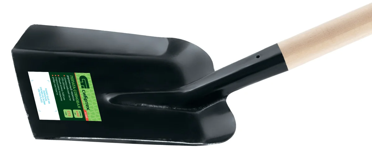 Лопата совковая, 215х260х1400 мм, деревянный черенок, Россия Сибртех 61309
