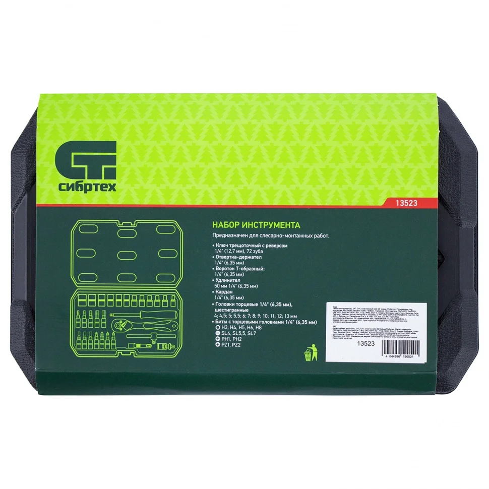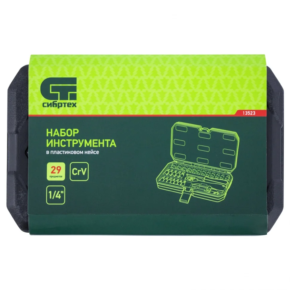 Набор инструментов 29 предметов, CrV, 1/4" Сибртех 13523